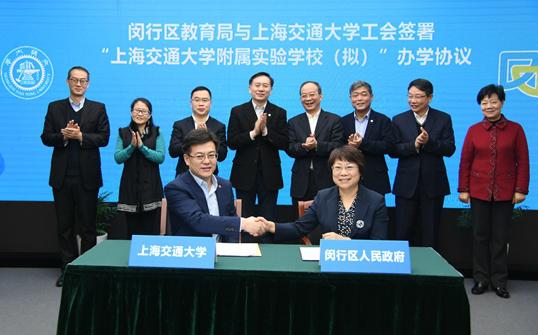 会上,闵行区人民政府与上海交通大学签署共建“环交大闵行校区基础教育生态区”战略合作协议,并签署了“上海交通大学附属实验学校(拟)”办学协议。