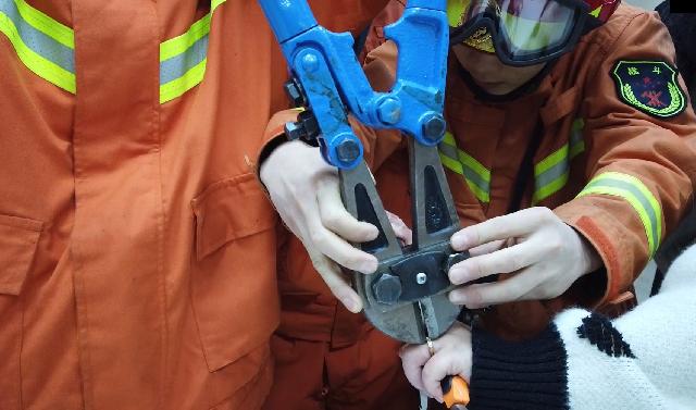 ▲视频:因手指被卡,消防员现场剪掉两枚戒指