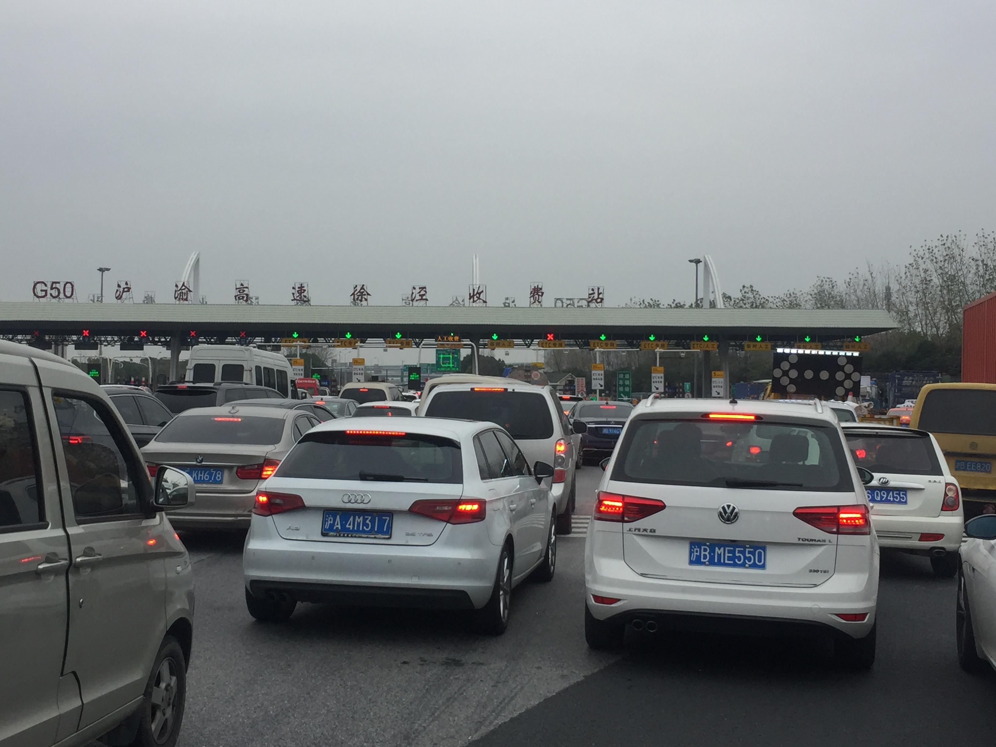 10时,记者来到G50沪渝高速徐泾收费站,西向东为进入上海方向,人工车道车流汹涌,但较G2京沪高速江桥收费站则好了很多,共11根车道启用,其中,5根为ETC车道、5根为临时人工车道、1根为混合车道。