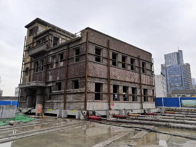 随着杨树浦路改造进程的推进,沿线历史建筑绝大部分予以原址保留,而杨树浦路540号风貌保护建筑由于无法原址保护,经多次专家会议论证,决定采用平移修缮方法进行异地保护,并将结合相邻地块开发重新功能定位。平移工程于去年10月8日正式动工,施工人员对老建筑先进行加固保护,去年12月26日启动平移,历时11天,至今年年1月5日平移到位。