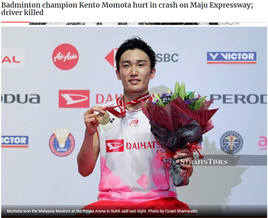 据新加坡《海峡时报》报道,刚刚获得马来西亚大师赛冠军的日本羽毛球选手桃田贤斗,在当地的遭遇了车祸,目前已经被送往医院接受治疗。