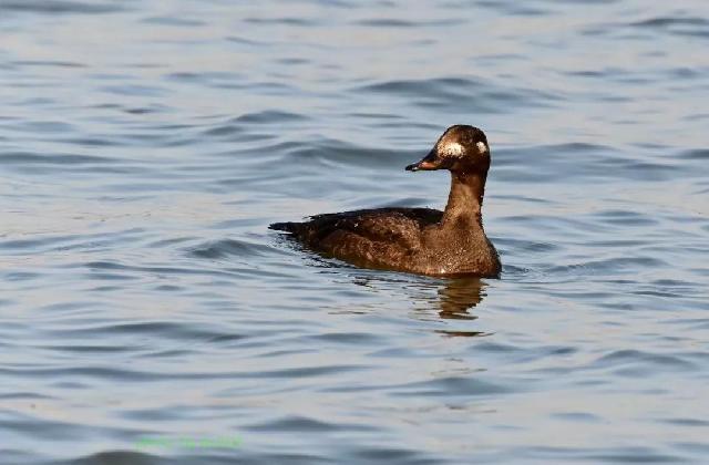 黑海番鸭雌鸟“摆好了Pose”,观鸟爱好者们纷纷按下快门键,同时入镜的还有一群斑脸海番鸭,它们相对来说不是那么的罕见,因而也没有引起人们的注意。