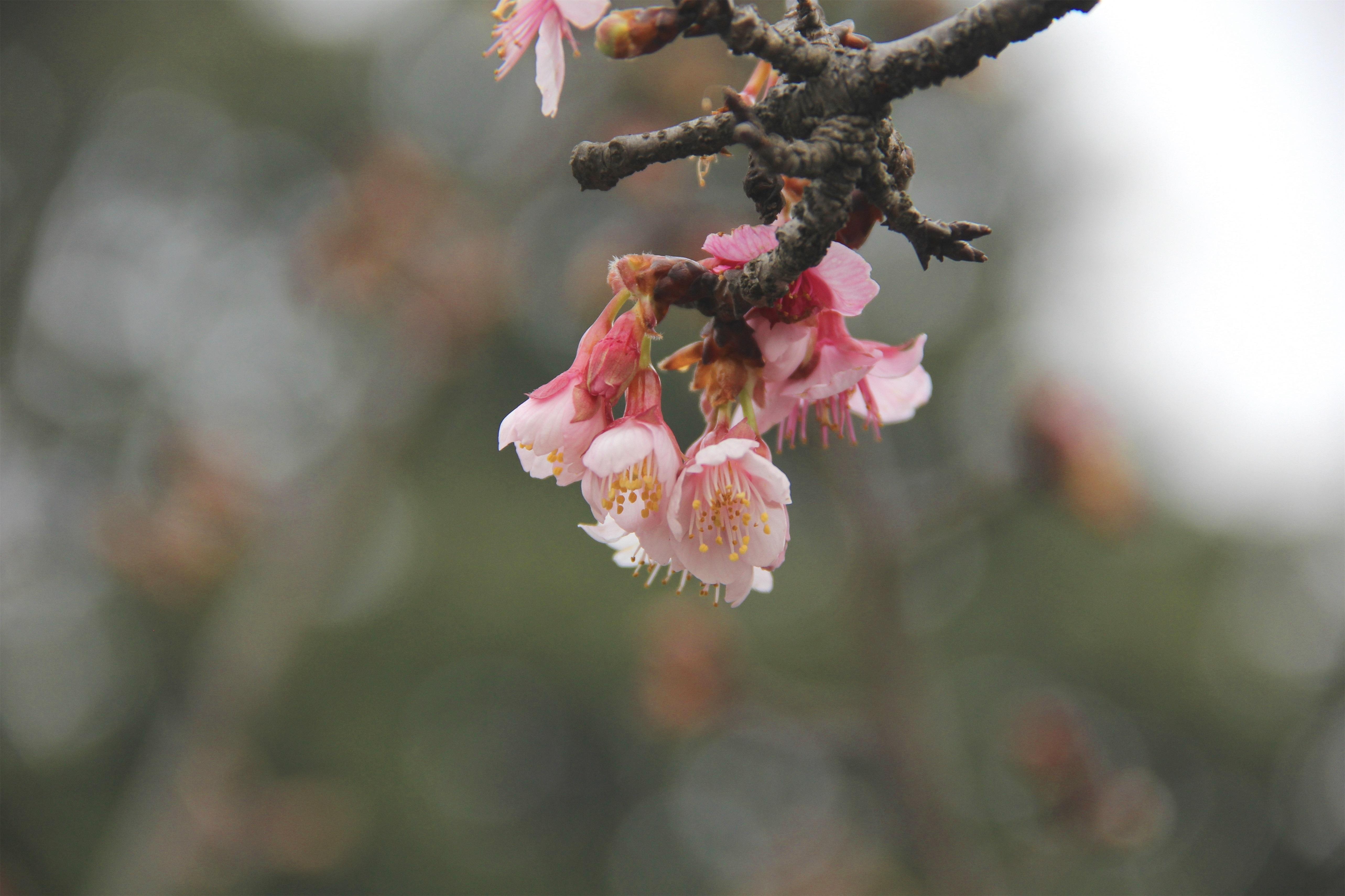 在上海植物园的蔷薇园河岸边,可以观察到4种绽放中的樱花,分别是寒樱、冬樱花、福建山樱花和冬樱,都是零星开放。