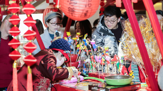 春节临近,南京路步行街上的第一百货商业中心也是越来越热闹,除了节日期间的折扣优惠,传统春俗活动自然是不可或缺,捏面人、写春联、编制中国结等等活动均由民俗手艺人亲自上阵,现场演示制作过程,让大家好好回味儿时的记忆。