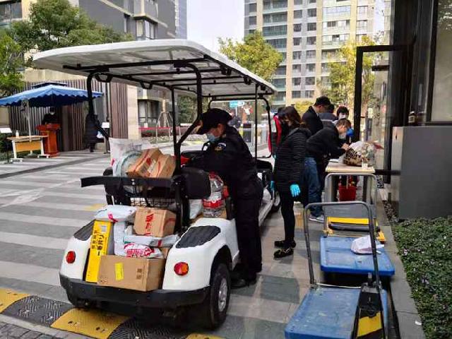 张龙标说,为了减少主动在家居民的与外界接触,在公司内部多番讨论下,他们决定自我加压,在小区内组建 “防疫工作突击队”,每天安排保安和客服管家将业主的外卖和快递派送到家。
