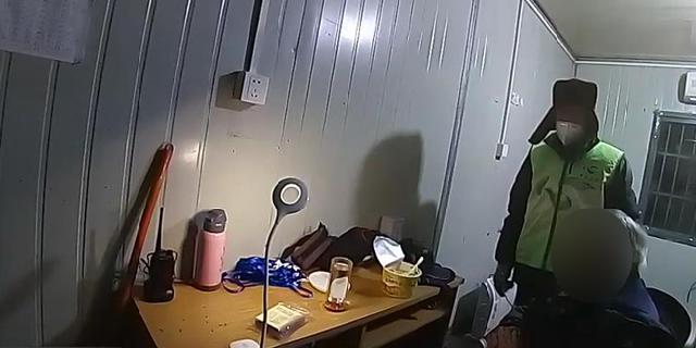 得知老人两日几乎未进食后,志愿者赶紧把老人搀扶进值守点,为老人泡上泡面,倒上热水,让老人解解乏。