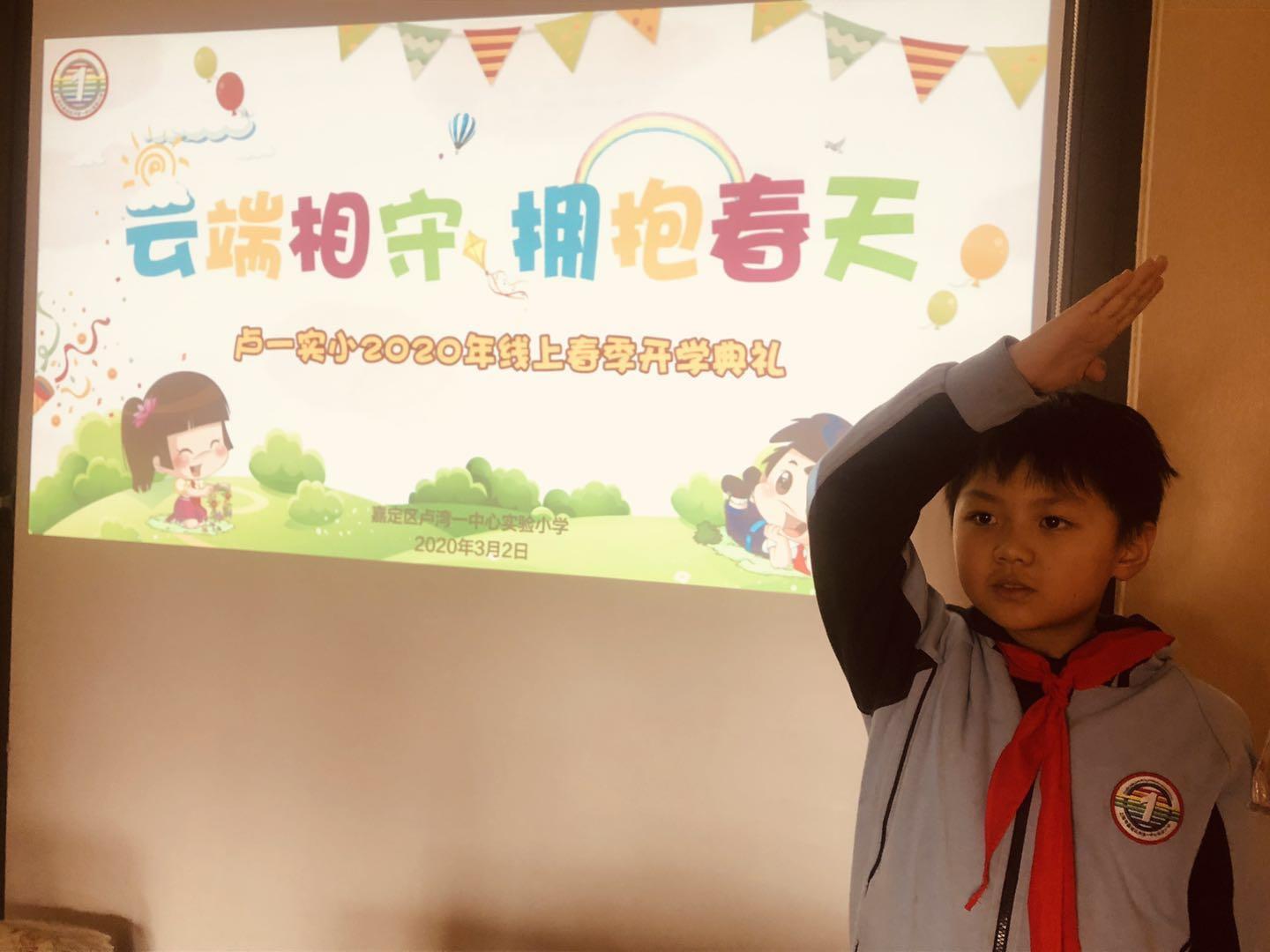 今天(3月2日)早晨8:30,三年级的李金毅已经穿好校服戴上红领巾,在屏幕前迎接大队辅导员的问候。这是嘉定区卢湾一中心实验小学(以下简称:嘉定卢一实小)的为孩子们准备的开课典礼,“云端相守,拥抱春天”,李金毅和全校师生同时上线,聆听校长致辞、家长感言、教师叮咛和学生发言,孩子们还一起回顾了假期活动。