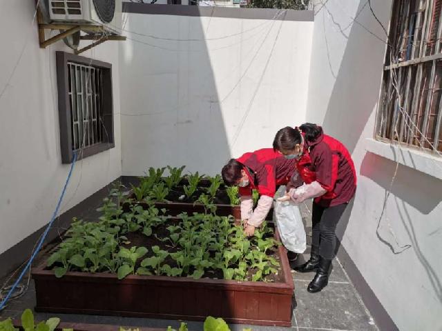 2019年,北大街居民区党总支打造了“共享菜园”党建项目,在党群服务站的天井内种起了蔬菜,平时供应给社区的孤寡老人与困难党员。在疫情防控期间,“共享菜园”则成为了独居老人、失独家庭等社区困难群体身边的免费时蔬“补给站”。