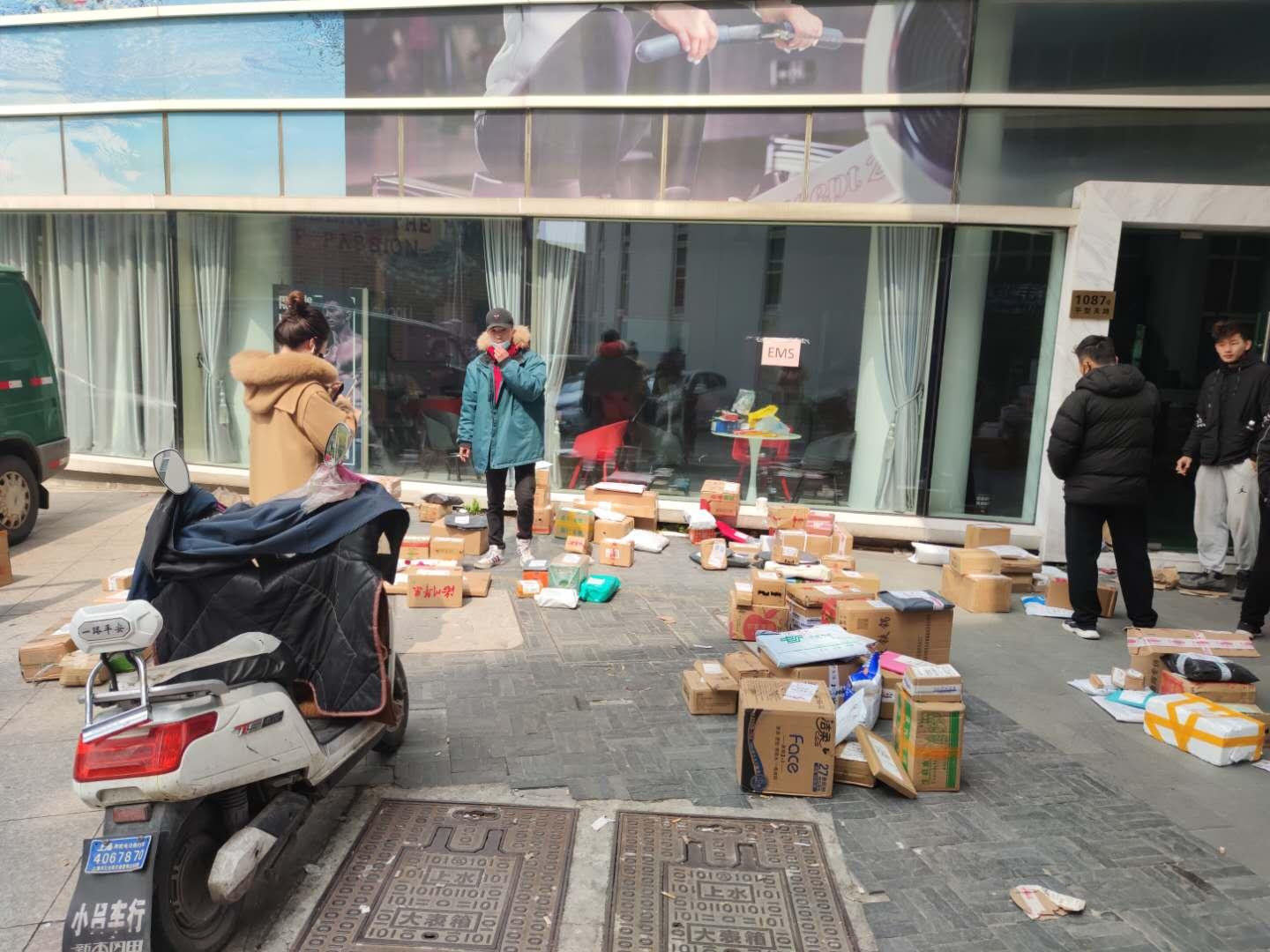 经过物业、政府部门的前后沟通,在小区一侧的小广场上开辟了一处临时“快递广场”,设EMS、顺丰、圆通、京东、申通、中通六个快递点,并分别与快递公司协调,快递公司派专人专车每天将快递集中运至此处并进行整理分发。