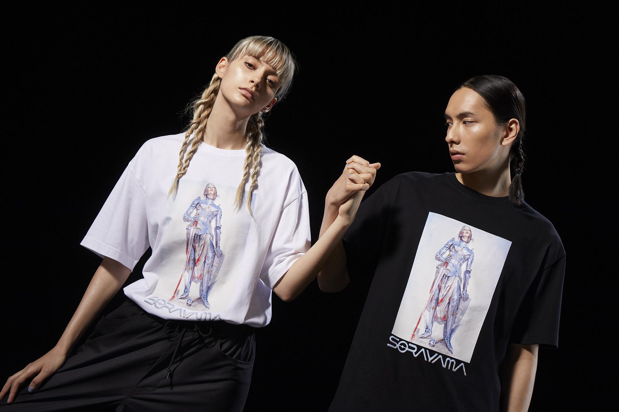 汲取空山基作品之中蕴藏的「金属之美」概念,本次联名单品单品设计使用的图案之一融合了躯体和金属质感,身着网状锁子甲的坚韧女忍者形象。画作由XLARGE与空山基本人共同从 「神圣的女战士」主题作品中精心挑选。联名单品设计中还包含了本次个展宣传卡片上所使用的「机械姬」作品,从不同题材的画作和设计中体现了『对空山基“美”的认知的一贯性』, 通过细腻的笔触、无比贴近现实的创作理念,赋予了机器人如同人类般的情感与真正的「灵魂」。