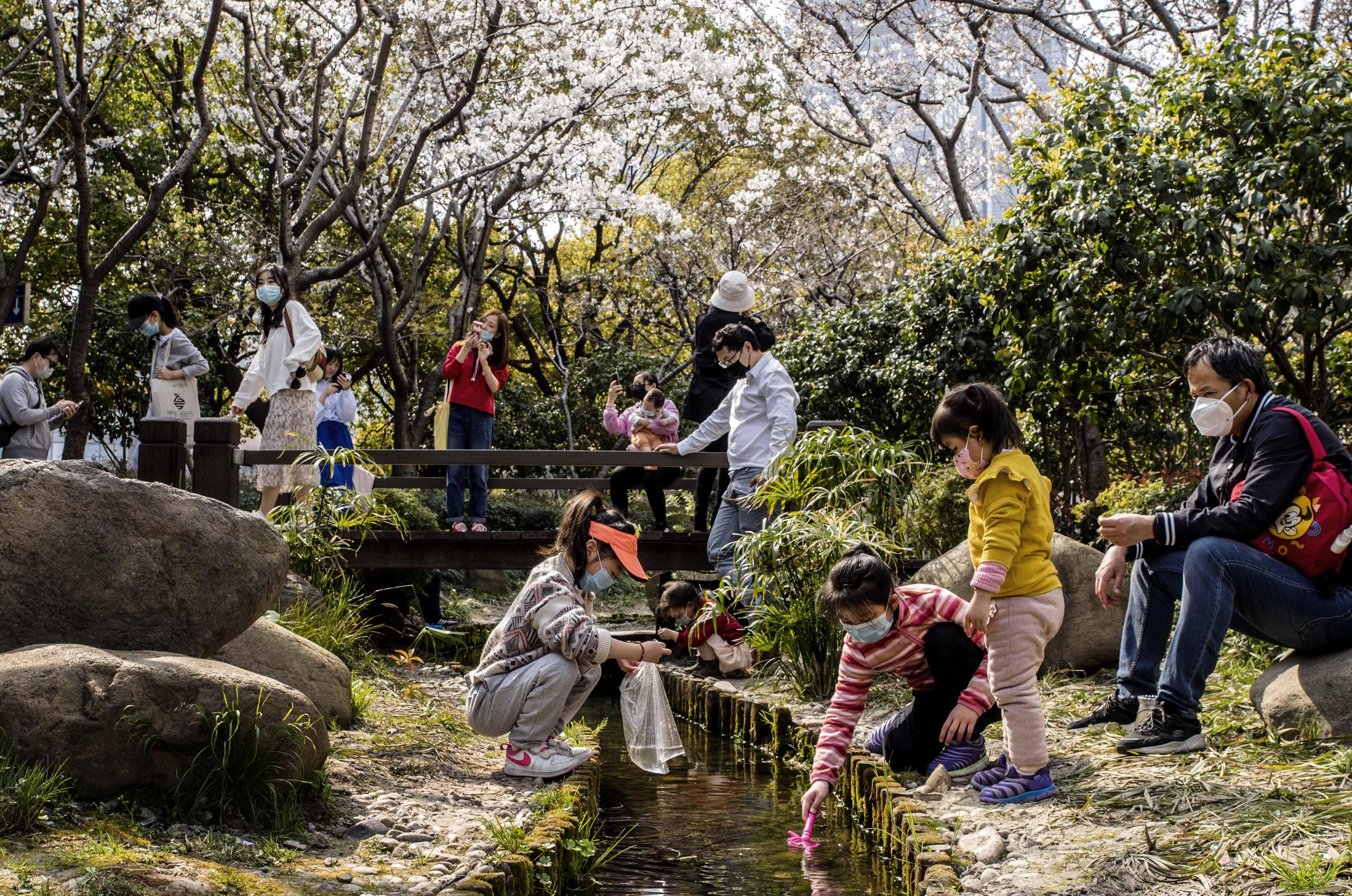 今天的申城天气晴好,暖洋洋的周末,不少市民走到户外踏青赏花。