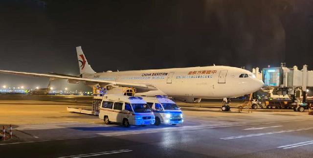 等了两小时后,检疫人员上了飞机带走了去过重点国家的乘客。