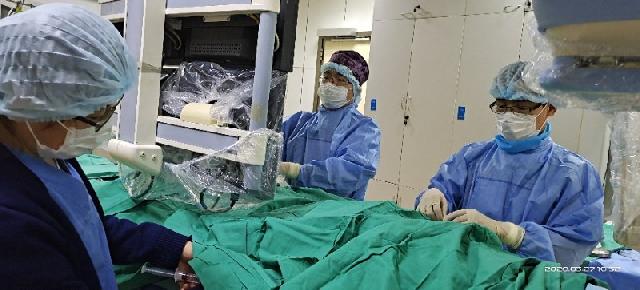 整个手术一直持续到凌晨5点30,在大家齐心合力之下,终于成功完成了吴先生的介入手术,在闭塞的血管中植入支架,重建了生命之桥,患者转危为安。