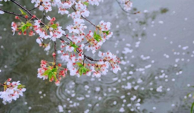 樱花随雨落,清明节后晚樱登场谢幕今年樱花季