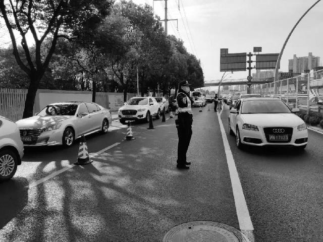 市公安局交警总队高架支队坚持“一堵点一方案”,早高峰期间每天安排警力固守在中环内圈漕宝路出口,引导车流规范、有序通过出口匝道。