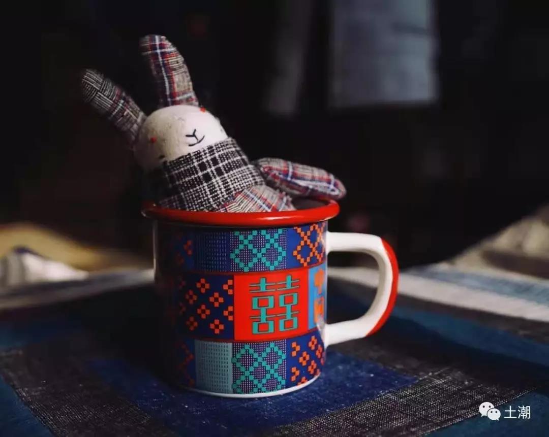 首期推出的作品是源于土布纹样的三款彩绘搪瓷杯。分别是:国潮中国双喜杯、蓝色流水纹双喜杯、娃娃布子母杯,用文创的方式向前人的智慧和美德致敬!也向认真生活的你致敬!