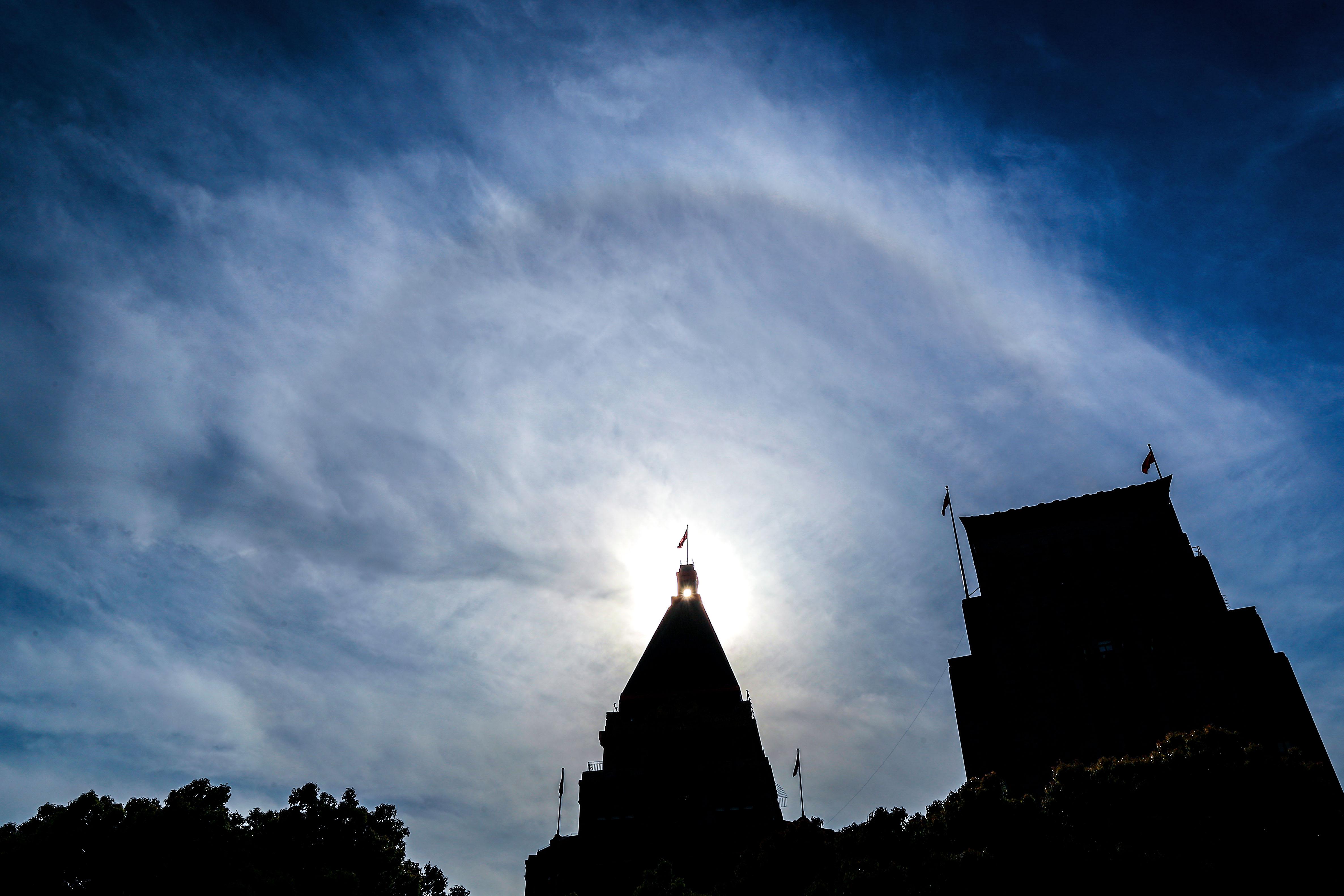 日晕又现申城,配上蓝天白云蔚为壮观 | 晨镜头
