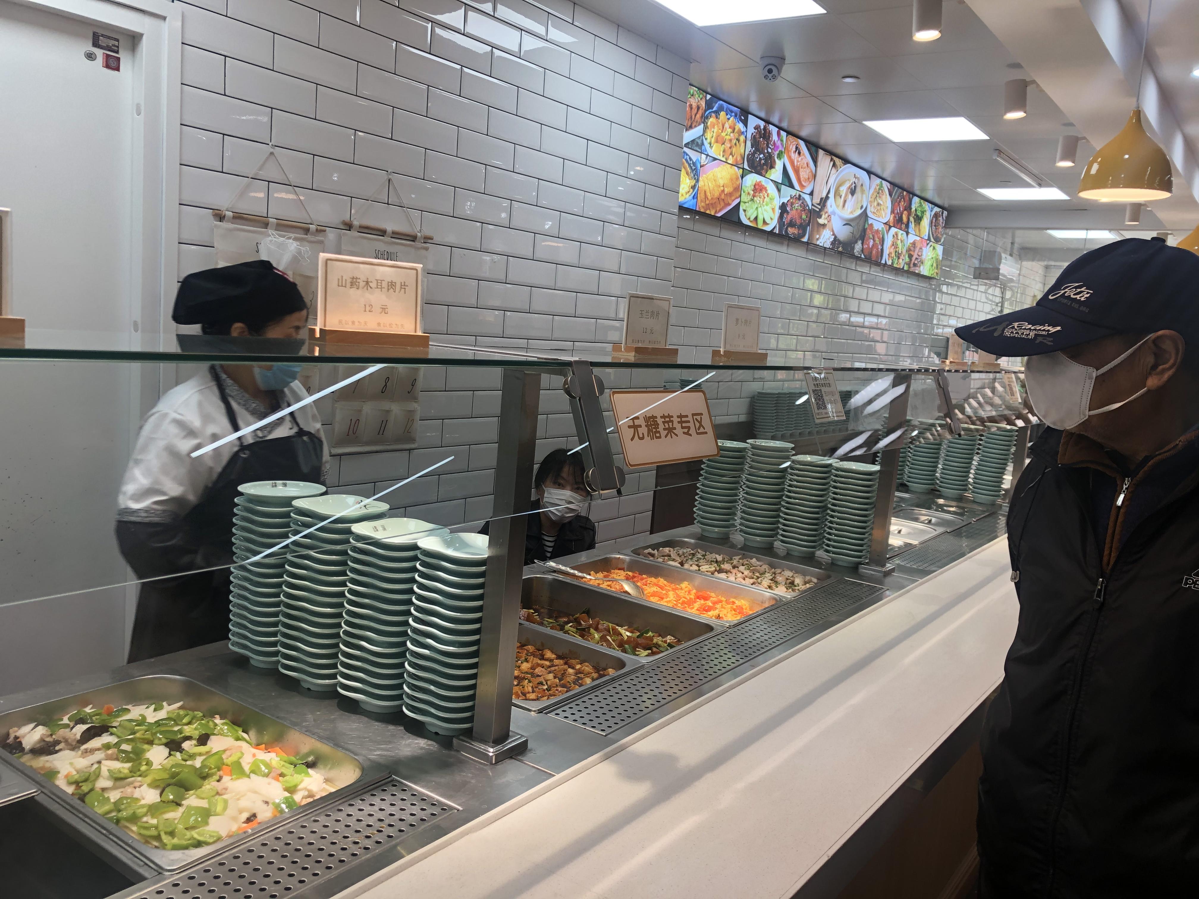“十一点半到十二点是白领们吃饭高峰,疫情前高峰时排队会到门口。所以老人们养成习惯,十点半就来吃饭,和白领们形成吃饭错峰。”