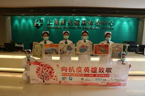 捐赠活动现场,主办方新华网、新华公益,向上海美兆古北健检中心捐赠了包括孙焱儿子作品在内的公益画作共5幅,并对美兆医护人员表示感谢和慰问,感谢医护人员在此次这场疫情战役中,用生命履行着自己的医学信仰,迎难而上,不计报酬、无论生死,为人民群众筑起一道道防线。