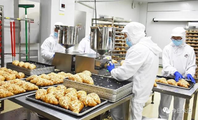 揉面、发面、擀面、定型、烘焙、注心、点缀……是否觉得这一些系列的操作步骤似曾相识,又是如此的接地气呢?日前,记者走访位于中发路666号朱泾工业园区内的上海鑫国食品有限公司,在糕点制作车间里,正不断上演着这一幕幕其乐融融的“家庭日常”,弥漫着阵阵“妈妈的味道”。