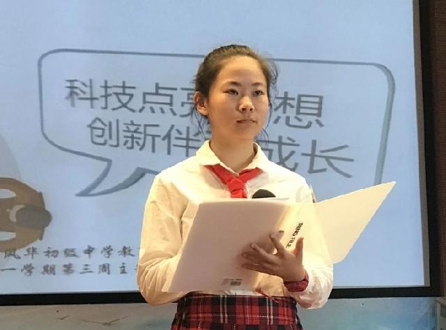 邵文淇同学是风华初级中学八(7)中队的班长,平时协助老师管理班级,带领同学们认真学习、积极参与各项活动。当老师不在教室时,邵文淇就会承担起管理班级纪律的责任,老师和同学们都对她赞赏有加。
