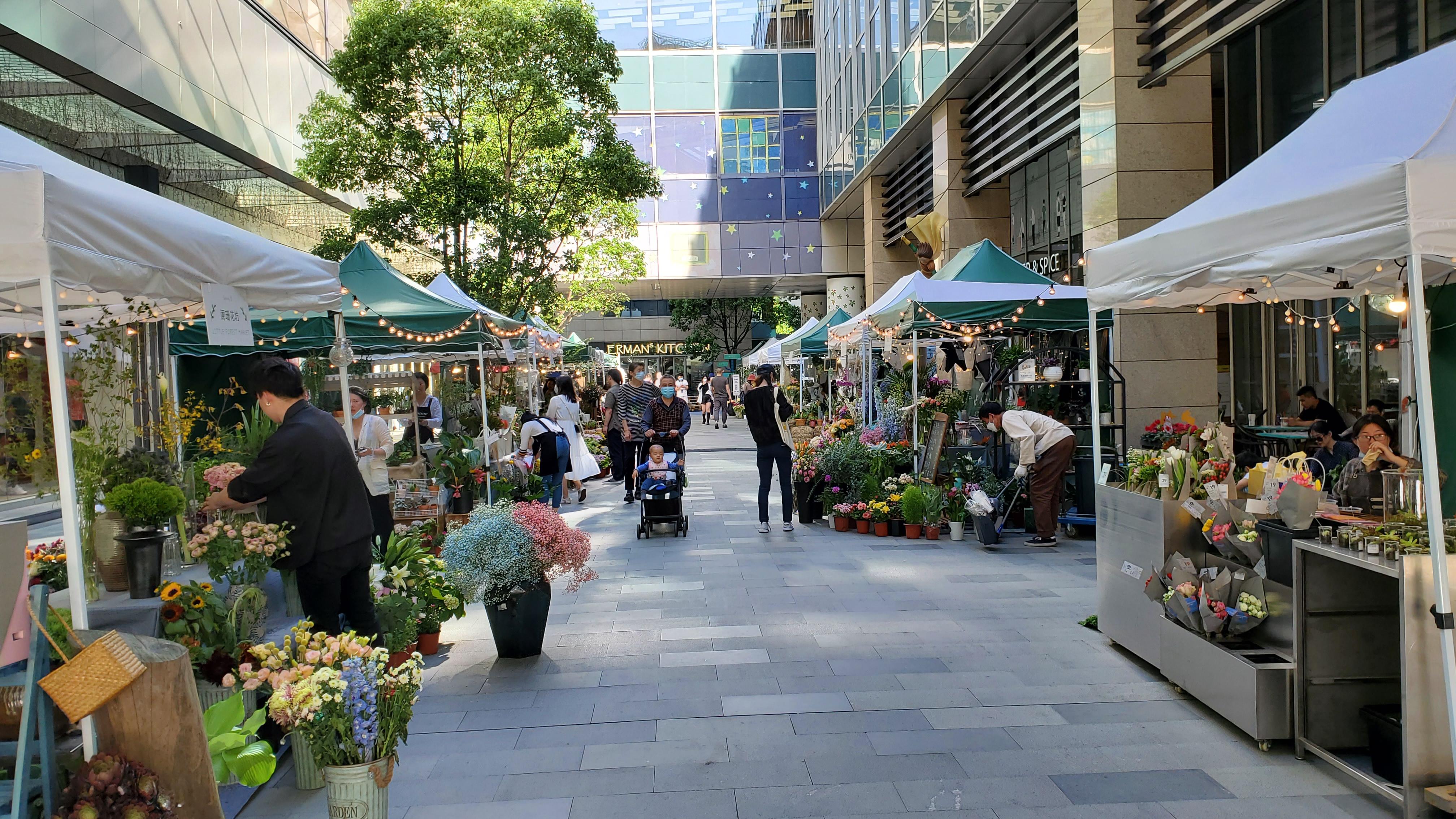 来自魔都各个商圈的精品花店,以及杂物店和美食店,都在这个小森林里。
