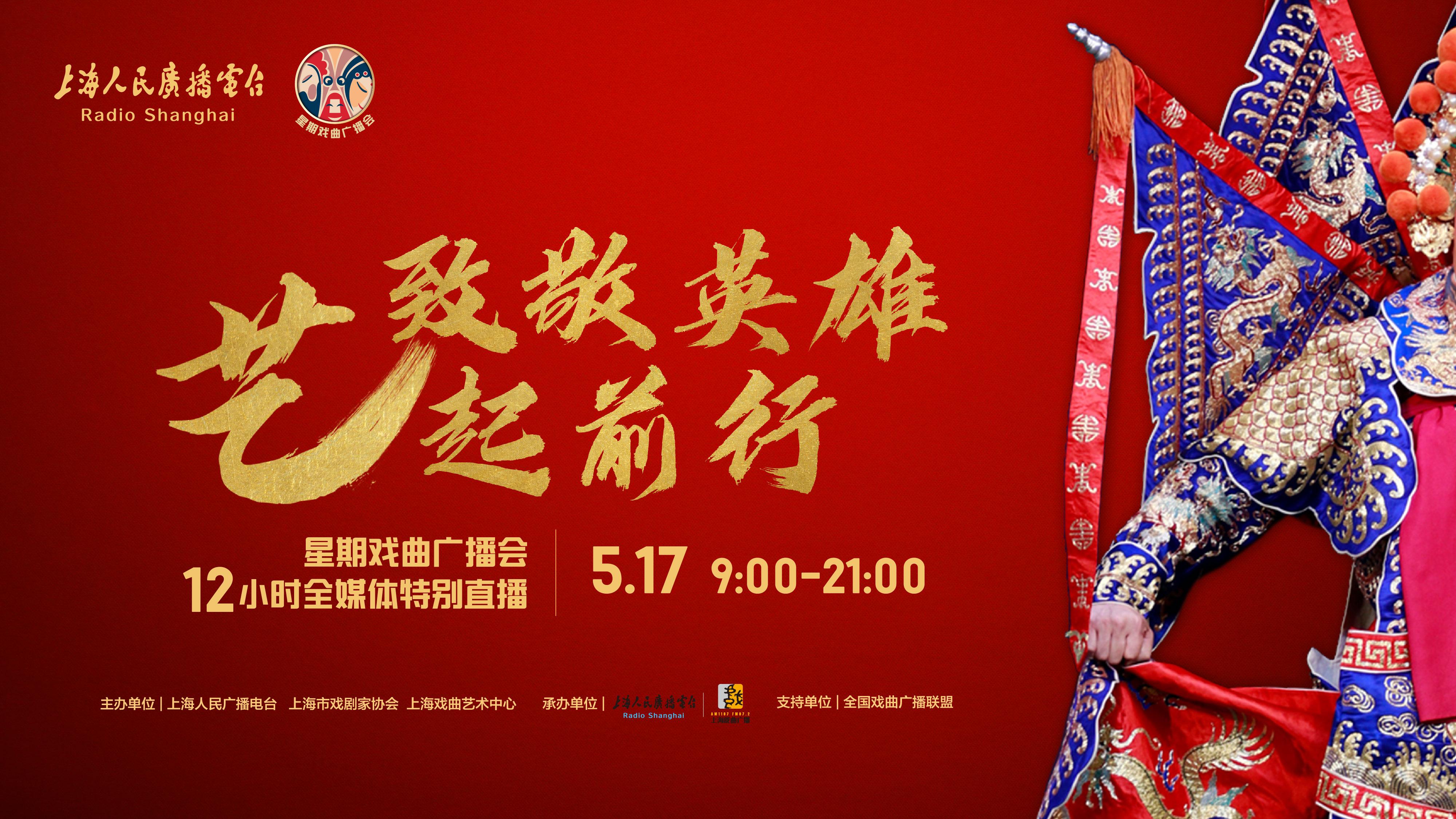 首次以全媒体直播形式推出的“戏曲马拉松直播”——《致敬英雄 “艺”起前行——“星期戏曲广播会”12小时全媒体特别直播》,将于5月17日上午9点至晚间9点,在FM97.2上海戏曲广播、FM89.9 899都市广播以及央视频、阿基米德、话匣子APP、风直播、看看新闻网、澎湃、文汇APP、优酷、哔哩哔哩等众多新媒体平台上同步音视频直播。