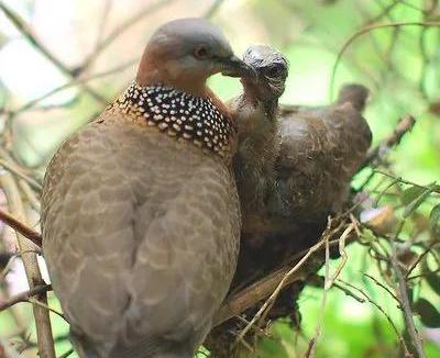 于是黄先生隔着玻璃窗悄悄的观察了起来,这对“野鸽子”体型小巧,羽毛却很特别,尤其是颈部的羽毛,呈现出黑白相间的斑点,通过上网搜索才得知,这竟然是一对珠颈斑鸠。
