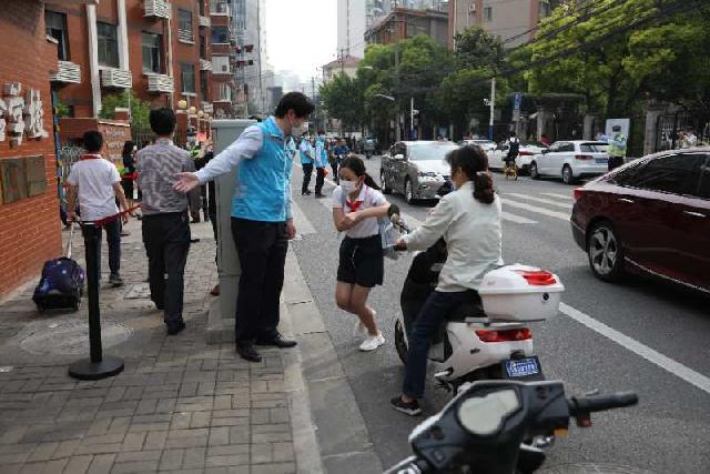 “随着高中、初中及小学部分年级的学生返校复课,相关学校道路通行压力较大,我们对于道路交通较为拥堵的路段,组织民警开展护校行动,维护现场秩序。”普陀交警支队综合管理大队民警单神奇对记者说。