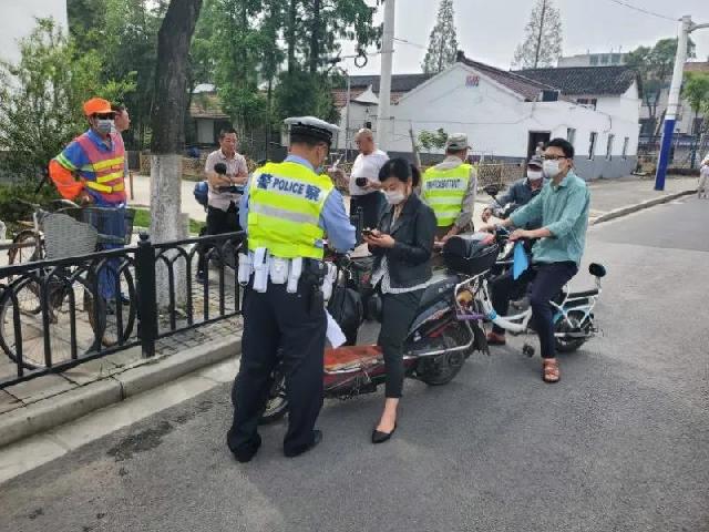 ▲2020年5月14日9时04分, 松江公安民警在辰塔路育新路北约200米处,对违法当事人周某某实施“”非机动车逆向行驶的”违法行为,处以罚款50元。