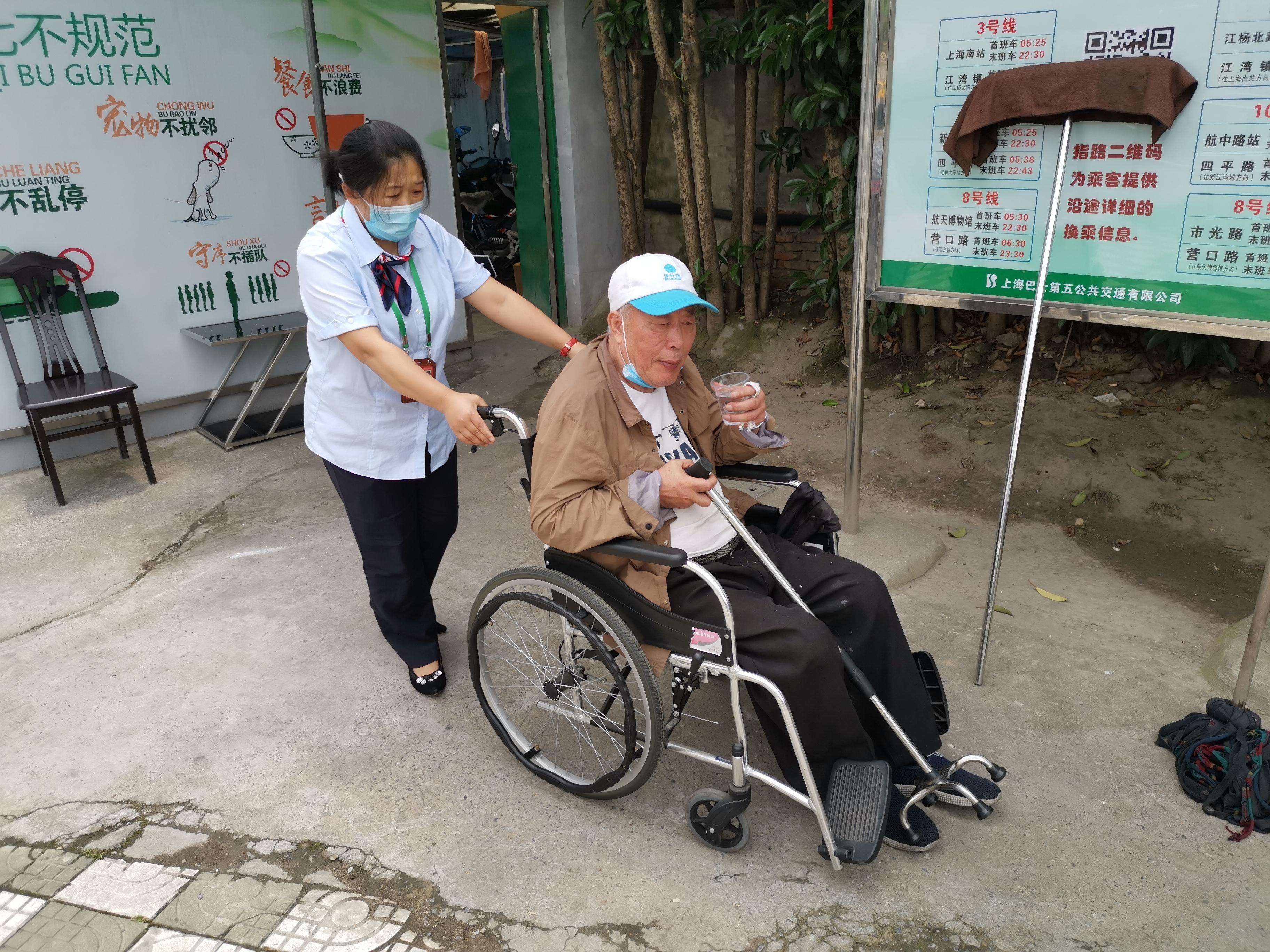 最近一段时间,公交车上经常出现走失的老人,工作人员尽量注意观察,主动提供帮助,使之尽快与家人团聚。今天上午,在一二八纪念路118路终点站,只见驾驶员蒋骏推着一位耄耋老人从公交车上下来。据蒋骏介绍:“这位老人是在四平路国权路站,由一位小伙推着上车的。到达阳曲路临汾路的时候,老人寻求我帮助要下车,小伙已经提前下车了,老人没有家人陪伴,我不放心,只能把他带回终点站。”