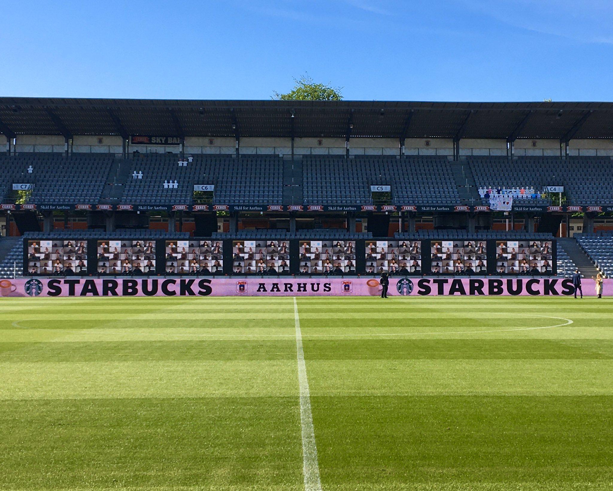受疫情影响,丹麦足球超级联赛在回归后与德甲一样,选择了空场比赛的方式。但为了传递球迷对球队的支持,奥胡斯官方选择了一种新奇的方式“邀请”球迷们现场看球——通过视频技术搭建而成的虚拟看台。