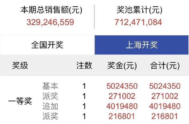 同时,这也是大乐透自4月29日开展“9.9亿元大派奖”活动以来,上海中出的首个一等奖。
