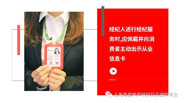上海房地产经纪行为信用信息平台5月正式对外发布,平台将会对经纪人进行信用备案,载体是房地产经纪人从业信息卡,由市房产经纪行业协会签发,为终生制的一人一卡、编号唯一,在二手房交易的过程中,购房者只要扫一扫,就能查看经纪人的信用情况,经纪人如在服务中存在严重违规行为,将被吊销从业信息卡且对社会公示。