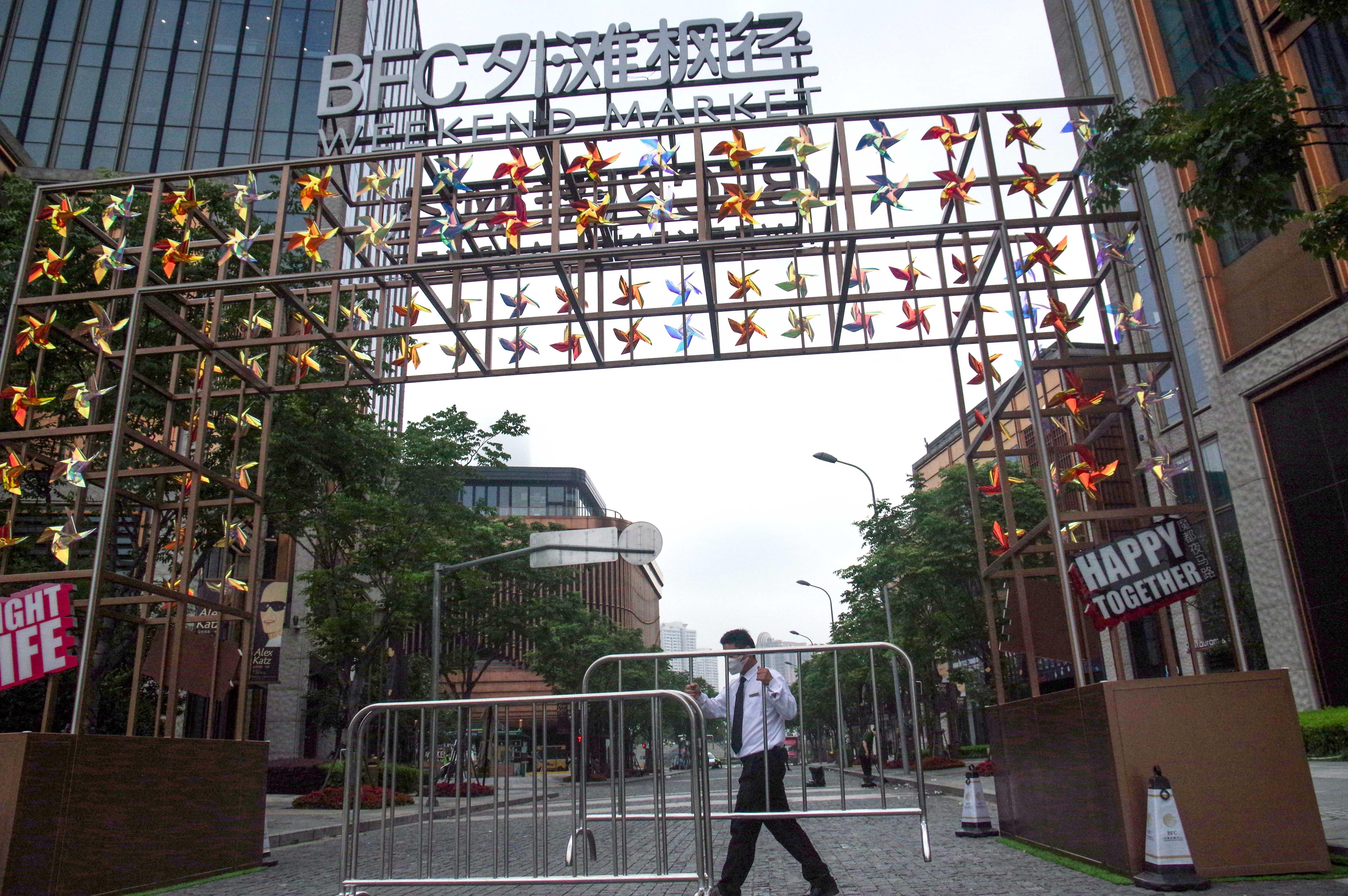 6月8日早上6点半刚过,保安撤除了枫泾路两头的隔离栏。热热闹闹了两天的“BFC外滩枫径”周末限时步行街集市暂告一段落,恢复道路交通功能。