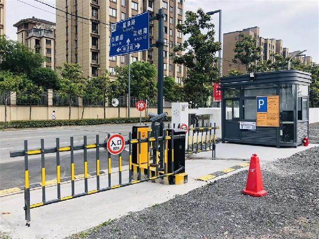 停车场内新增了围墙围栏、灯光照明、收费系统、灭火器、值班室、标识标牌等配套设施。