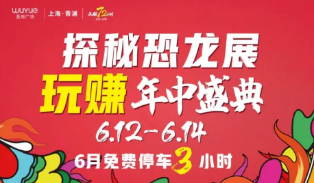 上海青浦吾悦广场年中庆典盛大启幕,6月整月免费停车3小时!探秘恐龙展炸城来袭,从6月12日开始直至6月27日整整十六天,史前巨兽恐龙将“包围”上海青浦吾悦广场。