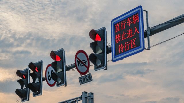 通过直行待行区,驾驶员需注意观察信号灯和电子显示屏指示。