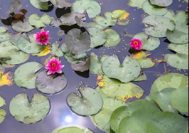 据介绍,今年新浜荷花园在种植布局上也有所调整,分荷花池、睡莲和盆栽三个观赏区。在荷花池观赏区,游客可沿着观光小道,近距离接触品种多样的荷花,细细品味荷的清香,在“接天莲叶无穷碧”中感受新浜荷花的诗情画意。小松注意到,在观光小道上每隔一段距离就有荷花品种介绍的牌子,游客可一边欣赏姿态万千的荷花,一边学习荷文化。在大棚睡莲观赏区,田字格错落有序,品种多样的睡莲竞相绽放,色彩斑斓,让人流连忘返。