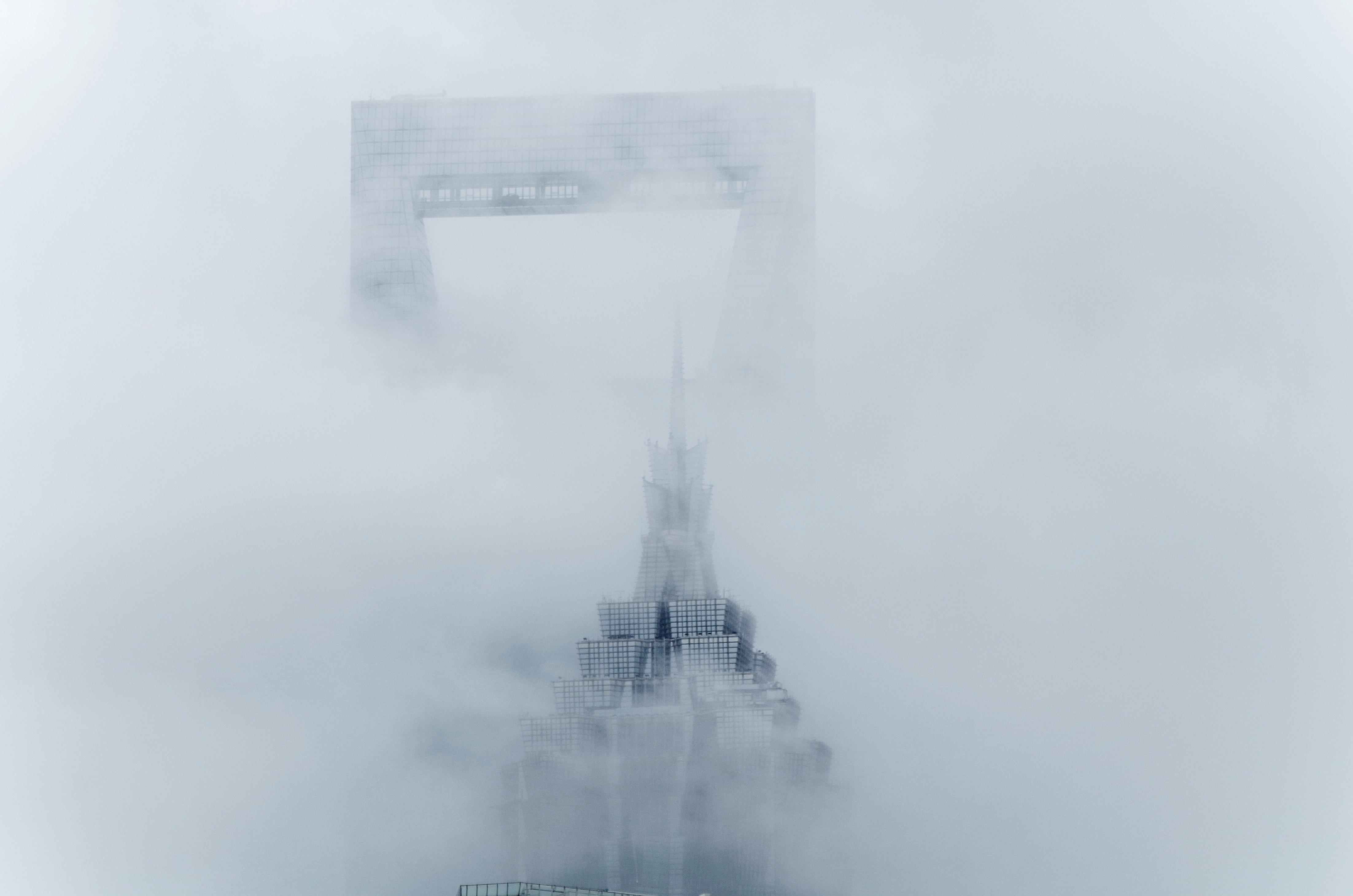雨后申城云雾缭绕, 高楼云间忽隐忽现 | 晨镜头