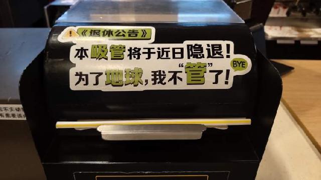 以往的吸管盒上,贴上了“本吸管将与近日隐退”的“退休公告”。