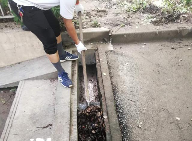 与此同时,阳光居委会联同物业对于小区排水沟、地下车库、道路沟渠等处进行落叶清扫。对于排水不畅的地方进行检查,发现情况及时疏通。