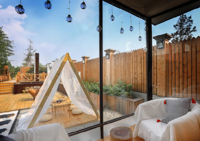 三间客房自带阳台,坐在阳台内,欣赏窗外美景,看一本书,喝一口咖啡,不负一段好时光。