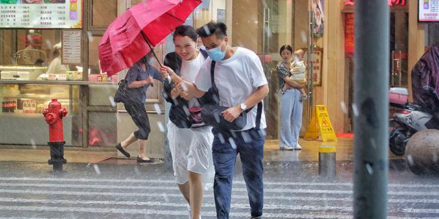 这场下个没完的大雨,把步行街上的行人和游客都“赶”到了各个商厦里躲雨,不少人一边躲雨,一边抬头看天,不知道什么时候雨才能小一点。
