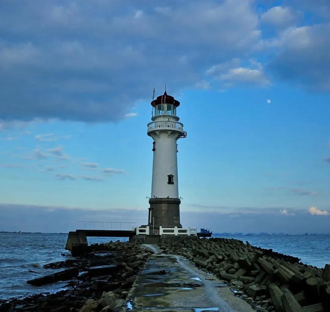 吴淞灯塔,位于上海吴淞口导堤最外端,是中外船舶进出黄浦江的重要助航标志,也是上海港门户的一个标志性建筑和观景点。