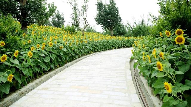 漫步于毛桥集市北侧的愚农庄园期颐岛,20亩金灿灿的向日葵依地势种植,错落有致、此起彼伏,在蓝天白云下绚烂怒放、煞是好看,为盛夏时节的乡间田野染上一抹亮丽的色彩。