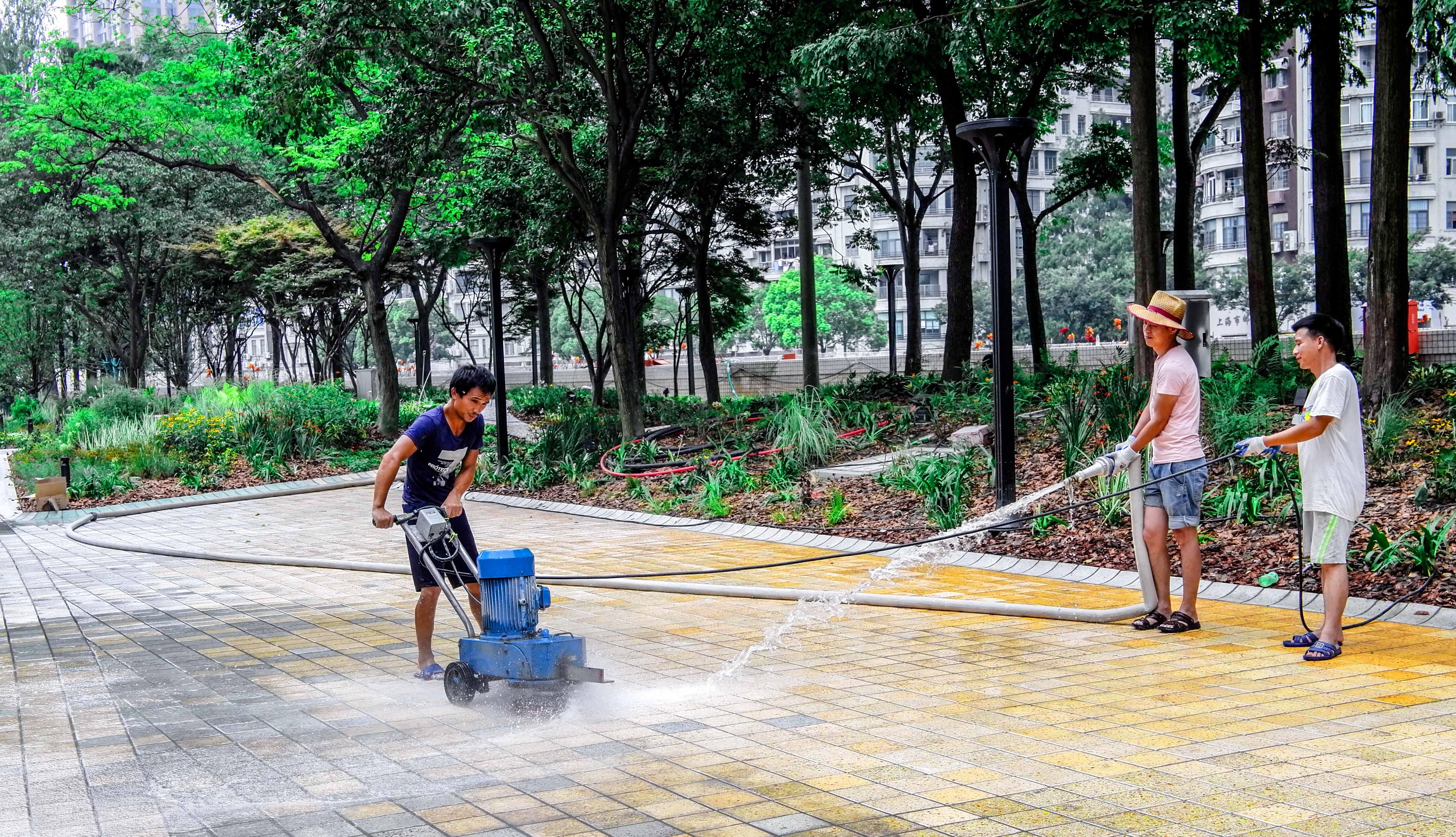 苏州河南岸滨河公共空间提升工程东三段(河南路桥-四川路桥)已基本改造完成,今天上午,记者在现场看到,工人们正在精心打磨水磨地砖。