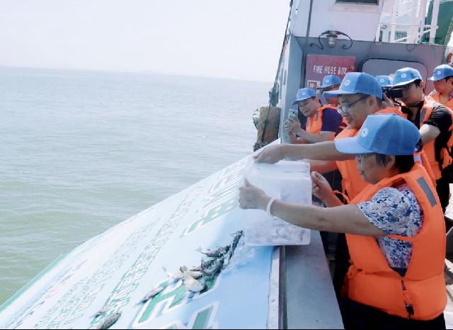据了解,今天进行的增殖放流活动,放流标志黑鲷2000尾、黄姑鱼5万尾,都是东海杭州湾地区的土著、特色鱼类。