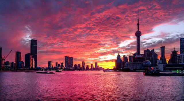 今天凌晨4点上海天空的火烧云 太漂亮了