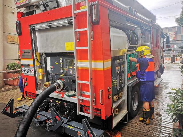 8月5日上午10点,化学工业区消防救援支队北河消防站接到消防救援总队调派前往应援:因受暴雨影响,金山区亭林镇华亭路一小区停放电瓶车、自行车的非机动车地下车库被水淹没。